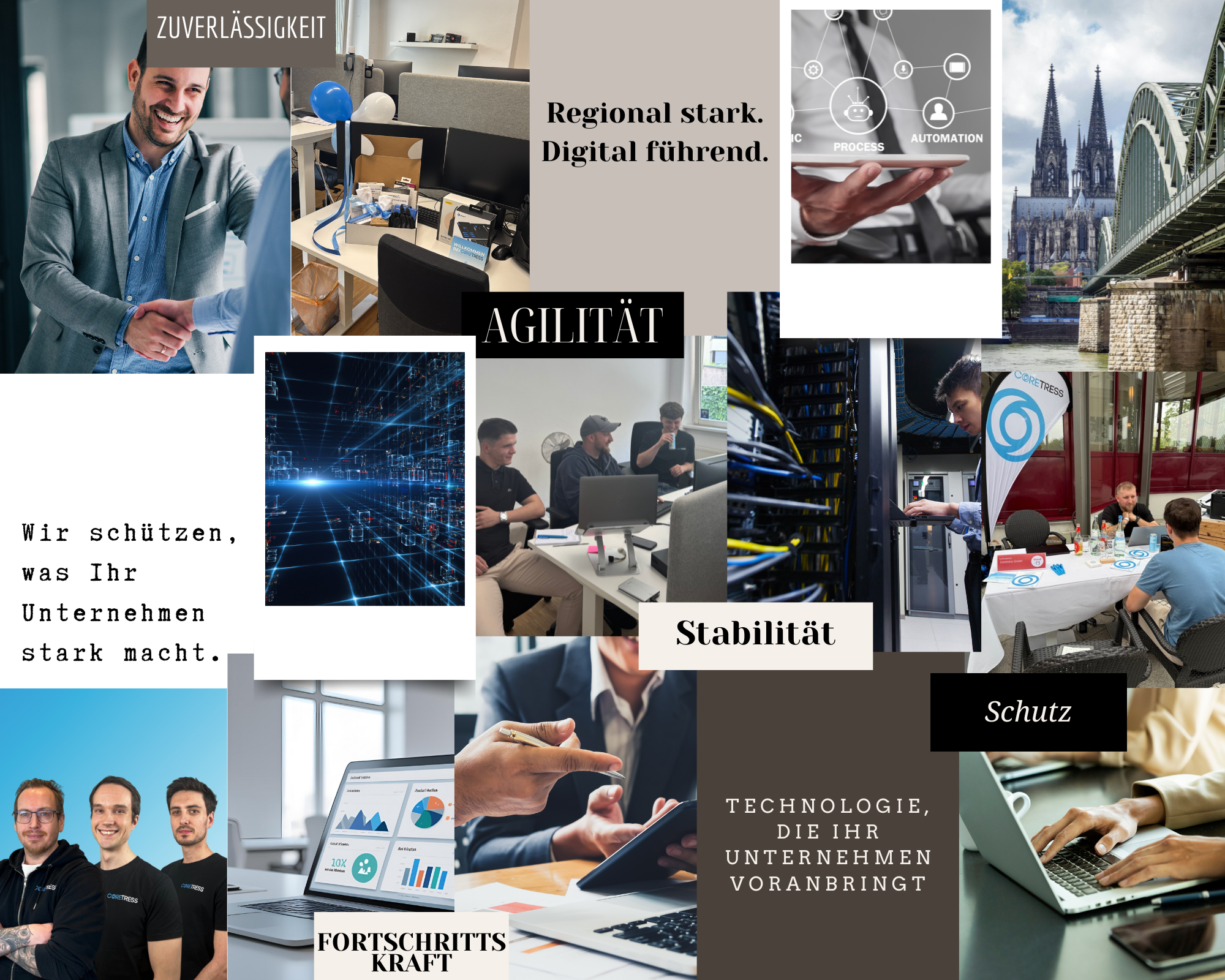 Bei coretress verstehen wir uns als Ihr dynamischer und fortschrittlicher IT-Partner im Raum Köln. Unsere Vision ist es, mittelständische Unternehmen – von jenen mit 30 bis zu 500 Mitarbeitern – in ihrer IT-Entwicklung zu fördern und gemeinsam die digitalen Möglichkeiten vollständig auszuschöpfen.