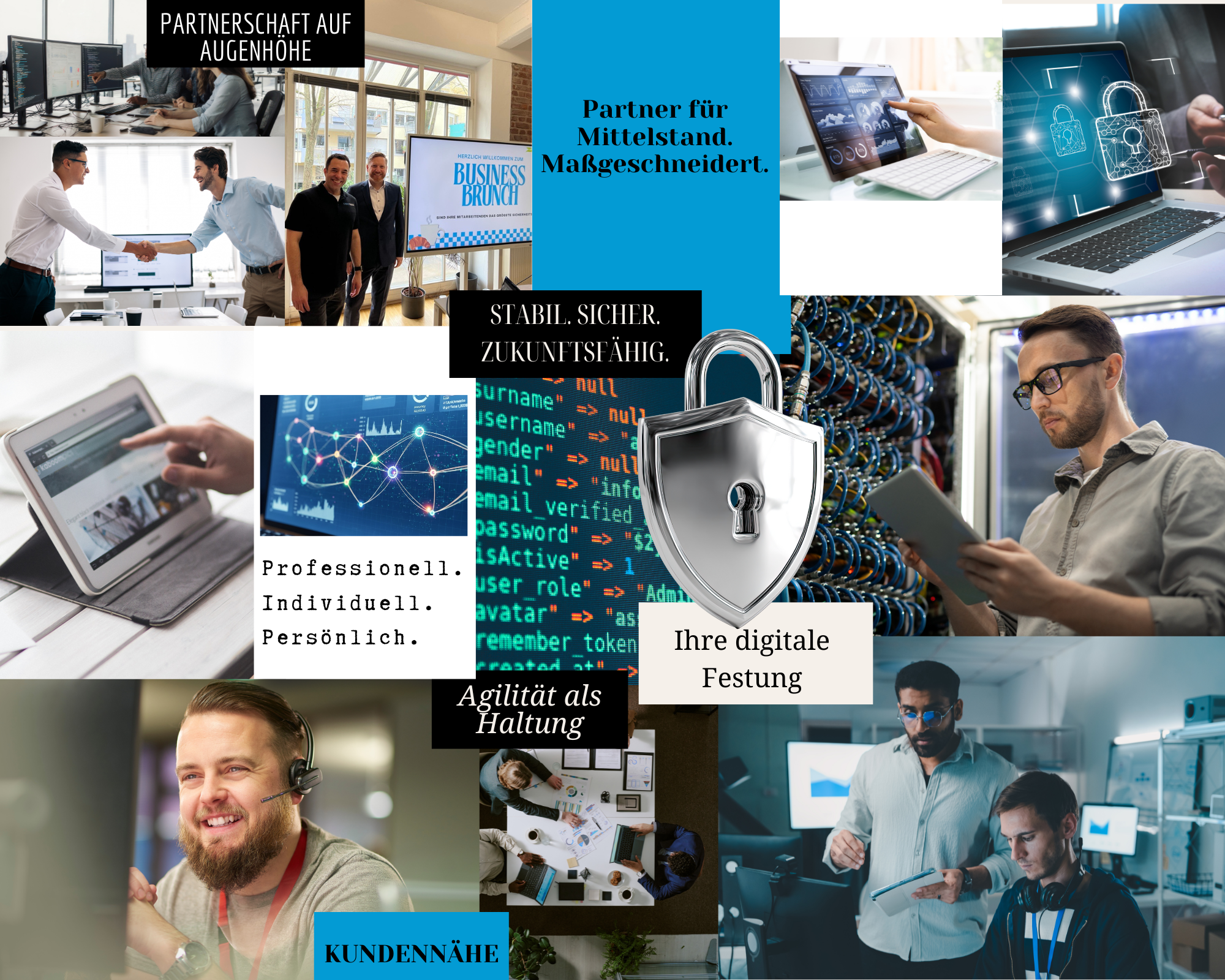 Durch unsere Expertise in IT-Sicherheit und IT-Infrastruktur gestalten wir nicht nur effiziente und produktive, sondern auch sichere und widerstandsfähige Arbeitsumgebungen. Es ist unsere Mission, durch vertrauensvolle und nachhaltige Partnerschaften mit Ihnen zusammenzuarbeiten, Ihre Prozesse zu optimieren und Ihre Geschäftsziele zu erreichen.